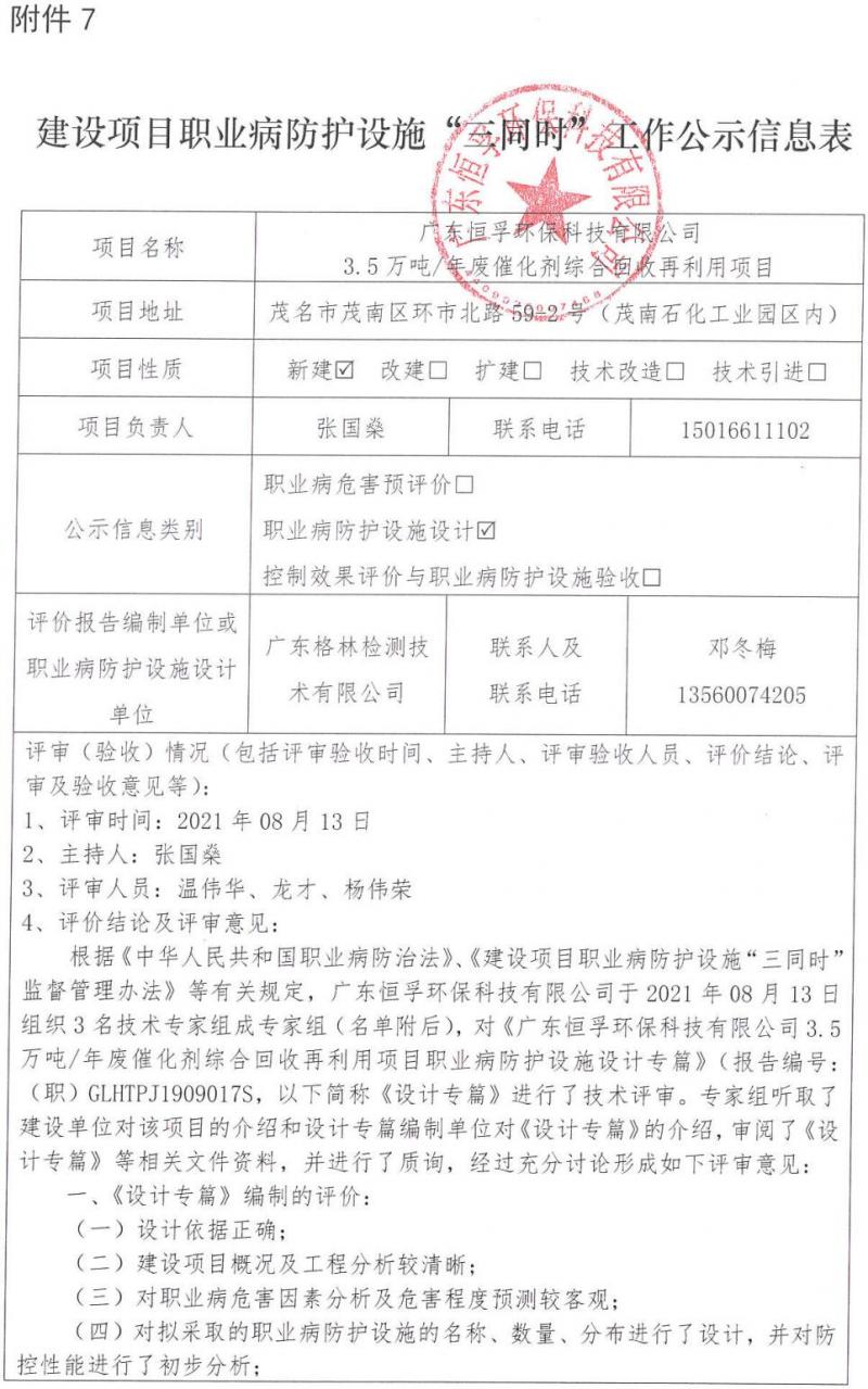 建设项目职业病防护设施“三同时”工作公示信息表(职业病防护设施设计)
